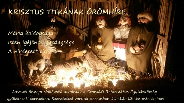 2017-12-07 08:50:47 AdminisztrátorSzeretettel és tiszteletel hívja az érdeklődőlet a Győr–szabadhegyi református gyülekezet december 9-én és 10-én ünnepi alkalmaira, melyek nemcsak advent jegyében, de a templom 25 éves fennállásának jubileumából is tartatnak.