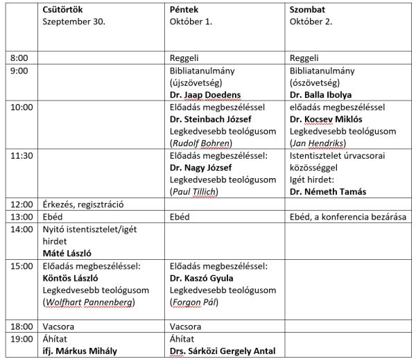 Lelkésztovábbképző 2021. szeptember 30 - október 2.