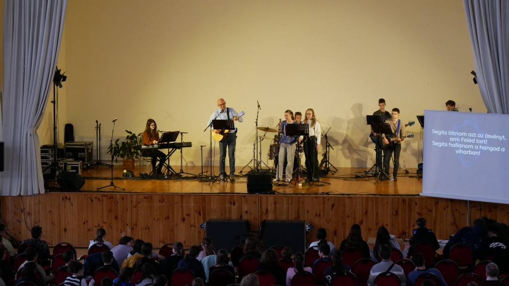 A Kaposvári Lorántffy Zsuzsanna Református Gimnázium tanulói az iskolájuk nyújtotta lehetőségek ismertetését zenés, énekes és táncos produkcióval színesítették.