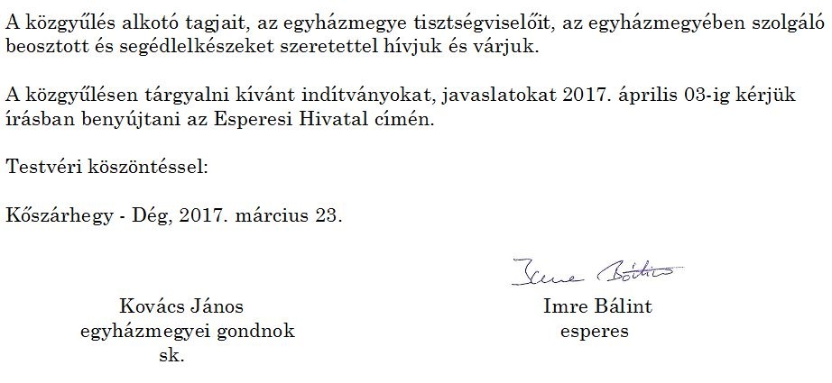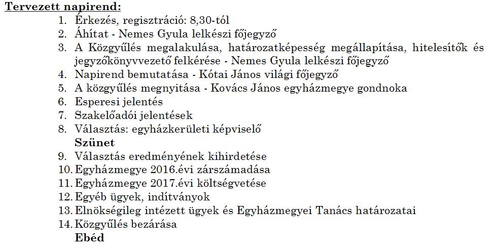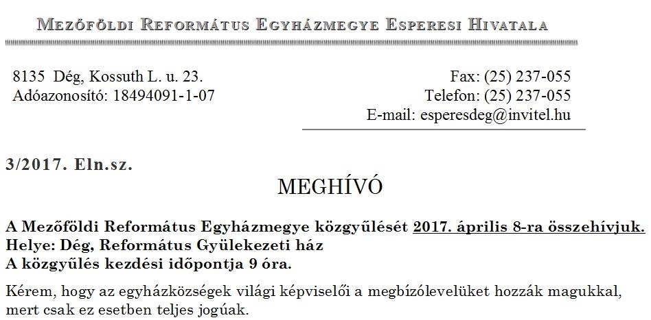 MEGHÍVÓ egyházmegyei közgyűlésre