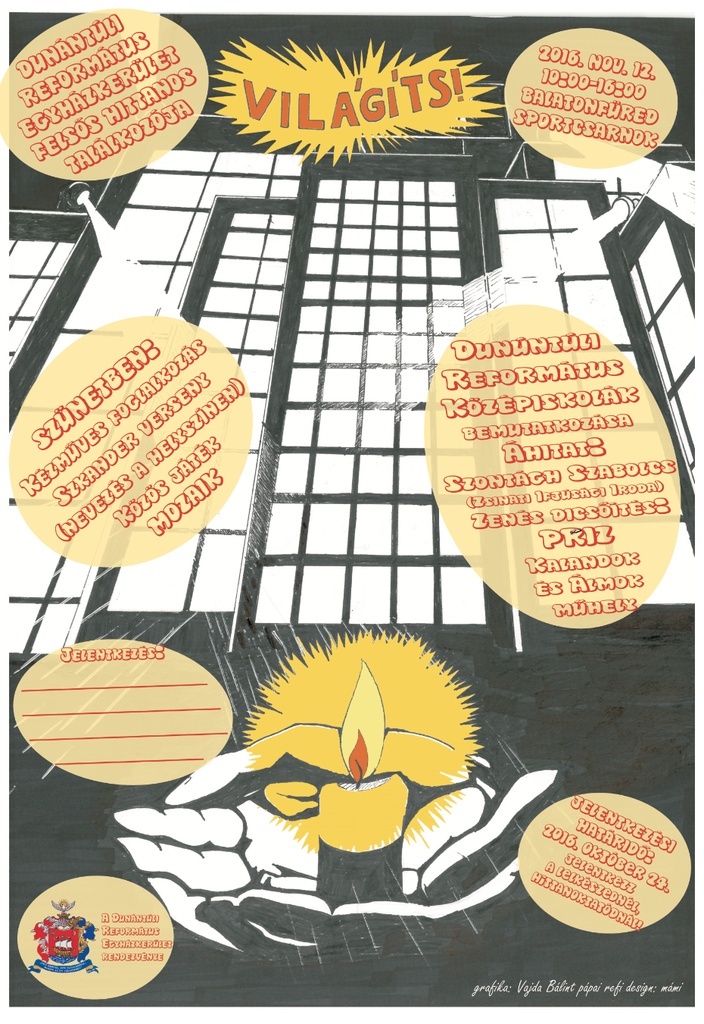 A Dunántúli Református Egyházkerület 2016. november 12. szombat 10:00-16:00 közöttre szervezi a 2. Dunántúli Felső Tagozatos Hittanos találkozót VILÁGÍTS! címmel, a Balaton Szabadidő és Konferencia Központban (8230, Balatonfüred Horváth M.u. - a 2016-os REND helyszíne).