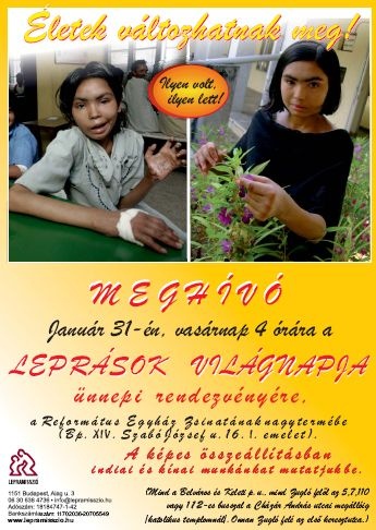 A Leprások Világnapjának ünnepi rendezvényét január 31-én 16 órakor tartják Budapesten, a Magyarországi Református Egyház Zsinatának üléstermében.