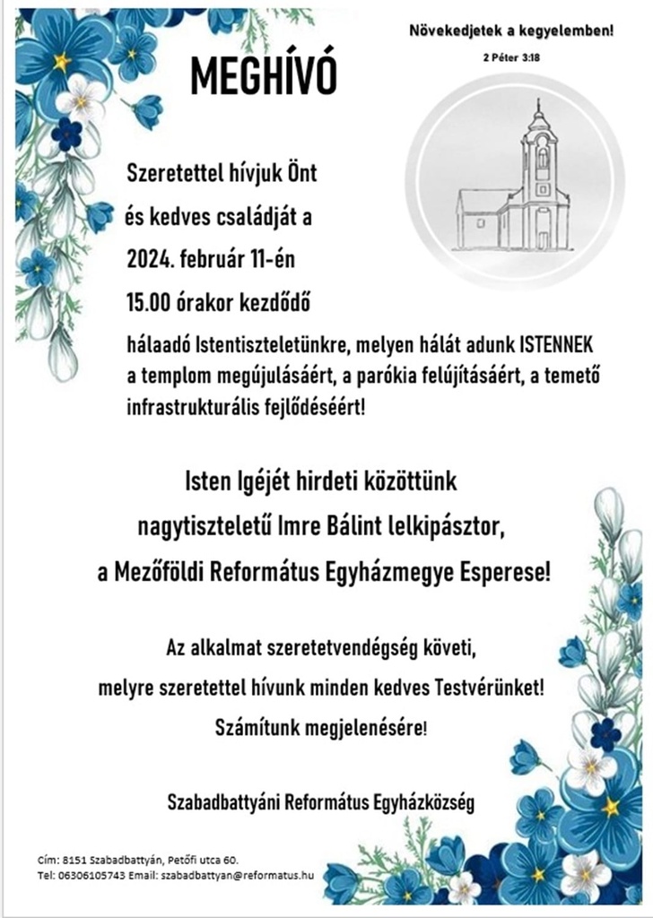 A lelkipásztorok az alábbi linken jelentkezhetnek 2024. február 19-én 12 óráig: