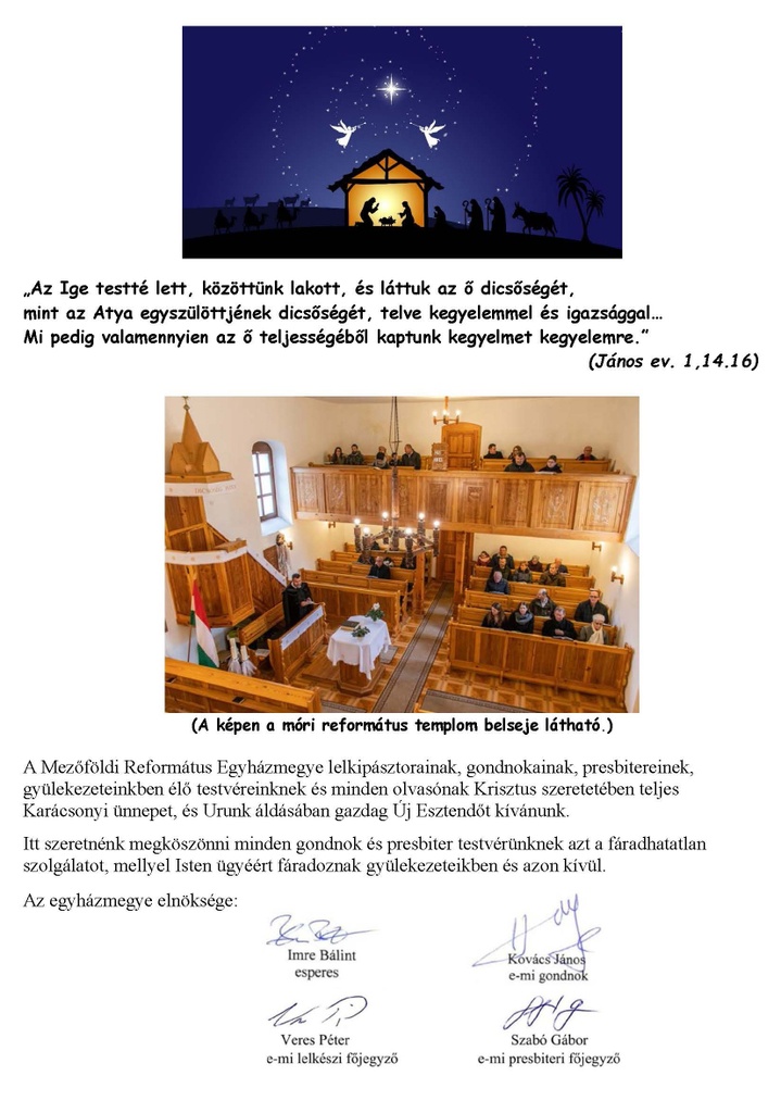 Ünnepi istentisztelet keretében november 21-én adták át a Móri Ábrahám János Református Óvoda és Mini Bölcsődét. Az Országos Református Óvoda Program keretében megvalósult beruházás a Dunántúli Egyházkerületben a tizedik új óvodai intézmény. Az ünnepségen igét Steinbach József püspök hirdetett: „Öltsétek fel a krisztusi újat, levetve a régit". Köszöntötte az új intézményt Soltész Miklós államtitkár is.