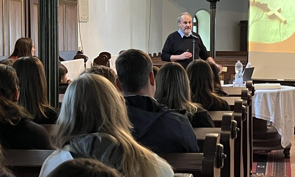 Egy rövid szünet után Szabó J. Róbert, Veszprémi Egyházmegye esperese előadásával folytatódott a program. Nagytiszteletű Úr arról tett beszélt a fiataloknak, hogy mennyi mindent kapunk a Jézus Krisztusba vetett személyes hitünk által. Érdekes, különleges előadását humorral, személyes hitéből fakadó bizonyságtételekkel fűszerezte. Mindent fiatalt mélyen megérintettek és elgondolkodtattak őszinte szavai.
