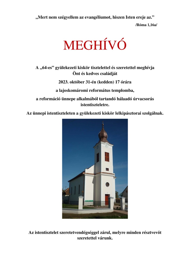 a gyülekezet megerősítette a reményt jövőre, amely már a jelenben is megélhető. Az ünnepi istentiszteletet követően szeretetvendégséggel várták a jelenlévőket, ahol a résztvevők a testvéri szeretetben folytatták az ünneplést.