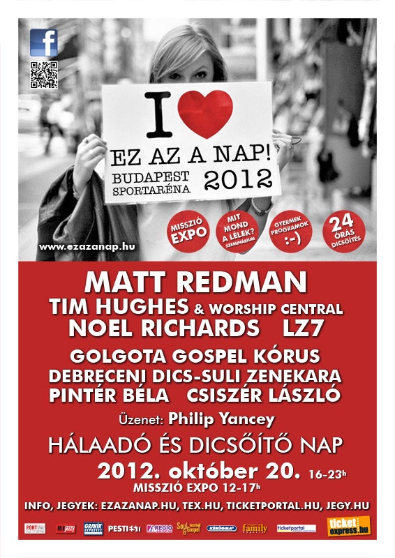 A helyszínen a fellépők CD-i és Philip Yancey könyvei kaphatók!