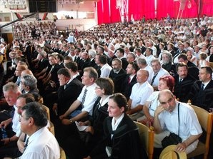 Az elnökséggel érkező többi gyülekezeti tag a Sportcsarnokban foglalhat helyet.