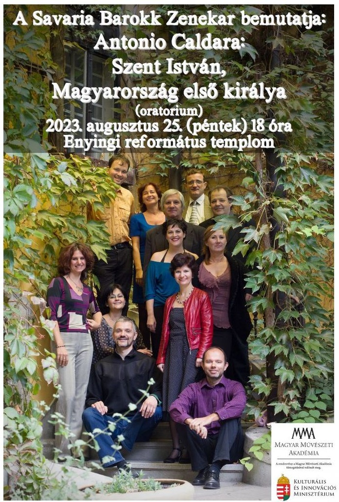 A Savaria Barokk Zenekar: Antonio Caldara: Szent István, Magyarország első királya (oratórium) bemutatójára 2023. augusztus 25-én, pénteken este 6 órakor.