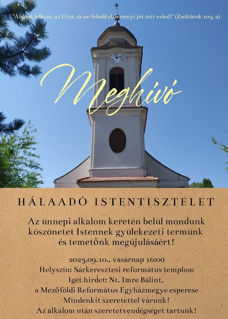 Az örök élet reménységében adnak hálát életéért és szolgálataiért: közvetlen családja, a kálozi református gyülekezet és egyházmegyénk tanácsosi kara.