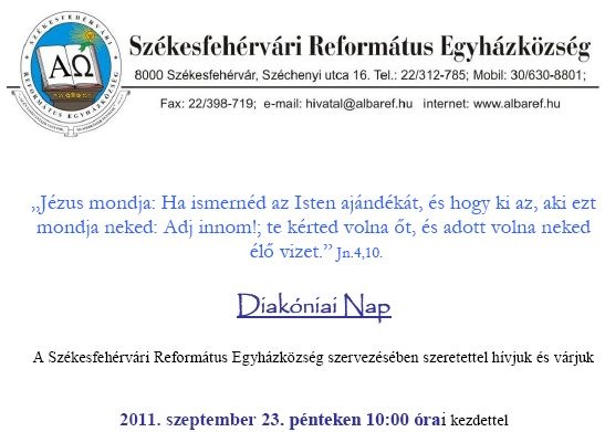 Szeretettel hívlak Benneteket szeptemberi lelkészértekezletünkre, melyet 2011. szeptember 27-én /kedden/ 9 órai kezdettel tartunk Dégen.
