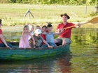lényegében nem más, mint egy hatalmas juhakol egyik felében szalmát szórtak a földre és plusz szalma bálák, hinták és kötelek sokaságával felszerelve ugrálós játszóteret alakítottak ki. Estefelére pedig finom vacsorát készítettünk mindenki számára, amely pincepörkölt és lángos volt. Az esős időjárás és egy szülő csónakja még azt az élményt is hozzáadta a naphoz, hogy az ideiglenesen keletkezett kis tavacskán csónakázhattak is a