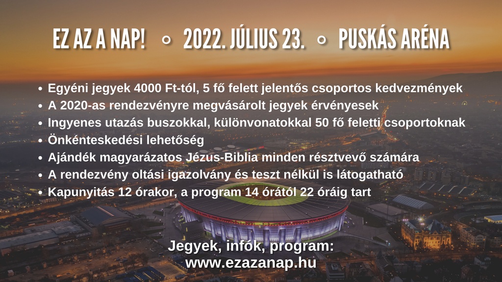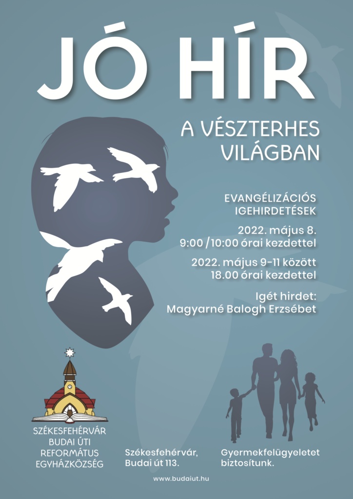 Annyi nehéz helyzettel szembesülünk a hétköznapokban, hogy már mást sem látunk csak a vészterhes világot. Május 8. és 11. között a Biblia lapjain keresztül keressük együtt a Jó Hírt ebben a vészterhes világban.