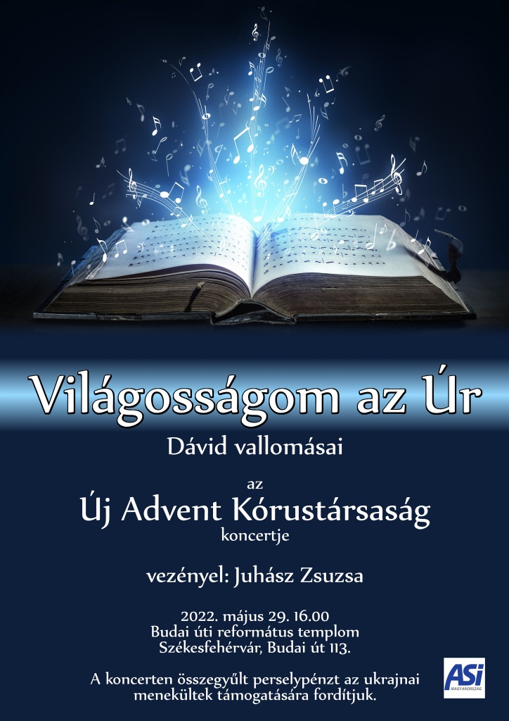 Most vasárnap 2022. május 29-én 16 órakor az Új Advent Kórustársaság, Dávid vallomásai címmel tart jótékonysági koncertet ad