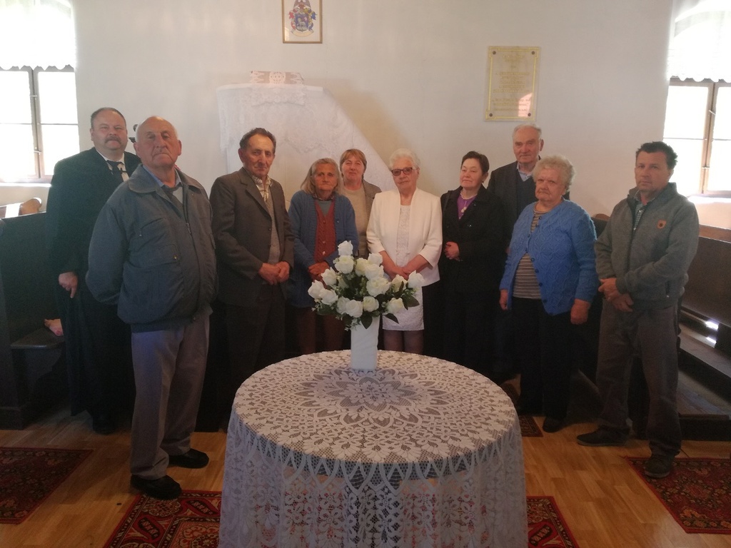 (A képen a középbogárdi református templom belseje, valamint a gyülekezet tagjaninak egy része látható.)