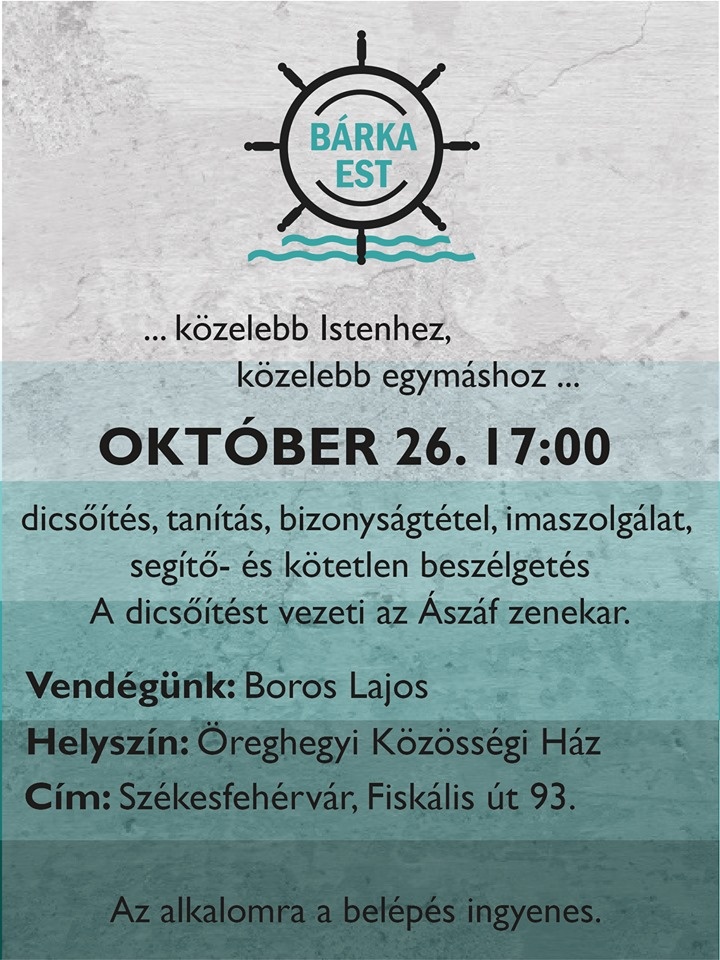 2019. szeptember 6-án megtelt a soponyai Közösségi Ház nagyterme. A résztvevők mindannyian egy cél miatt, a soponyai templom tornyának újjáépítése miatt jöttek el erre az alkalomra. Hálaadással a szívemben tekintek vissza erre az áldott estére.