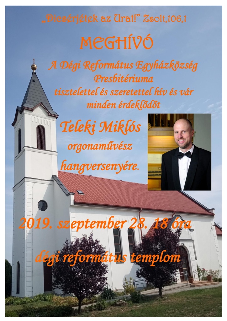 Az alkalom elején a jótékonysági est két fővédnöke, nagytiszteletű Imre Bálint Esperes Úr és Varga Gábor országgyűlési képviselő köszöntötte az egybegyűlteket. Esperes Úr igei gondolatai lelki táplálékot adtak számunkra, a képviselő úr pedig a templom fontosságát hangsúlyozta. Ezt követően egy diavetítés keretében a lelkipásztor, Kovács Csiba Krisztina számolt be a templomtorony történetéről. A Délibáb Népdalkör tagjai Szecsődi Rita vezetésével népdalokkal tették színesebbé az estét, majd Kispéter Virág, a Zichy János Általános Iskola és AMI diákja Csiha Kálmán Szeressétek a templomot című versét szavalta el. Az est utolsó, legnagyobb részében Mészáros János Elek művész úr, presbitertestvérünk adott koncertet. Gyönyörű hangja betöltötte a teret, elvarázsolta a közönséget. Személyes bizonyságtétele pedig minden hallgató szívét és lelkét megérintette. Lelki szolgálata sokaknak erőt adott. Minden szava prózában és énekben a Mindenható Isten dicsőségét hirdette. Hálás szívvel köszönöm művész úr koncertjét, a zenei szolgálatot, a személyes hitvallást.