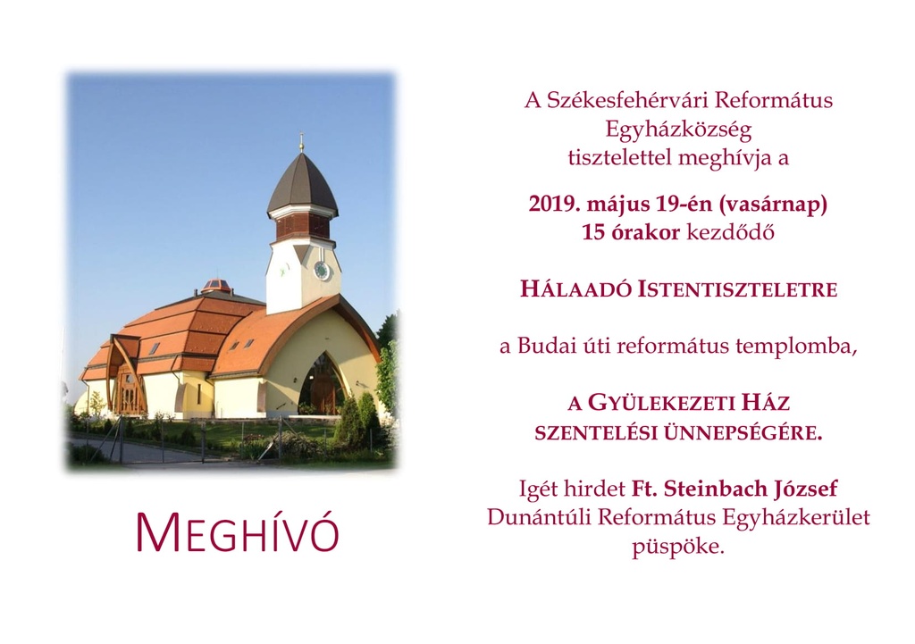 A Mezőföldi Református Egyházmegye lelkipásztorainak, gondnokainak, presbitereinek, gyülekezeteinkben élő testvéreinknek és minden olvasónak Krisztus megváltó kegyelmében gazdag Húsvéti ünnepet kívánunk. Krisztus feltámadt!