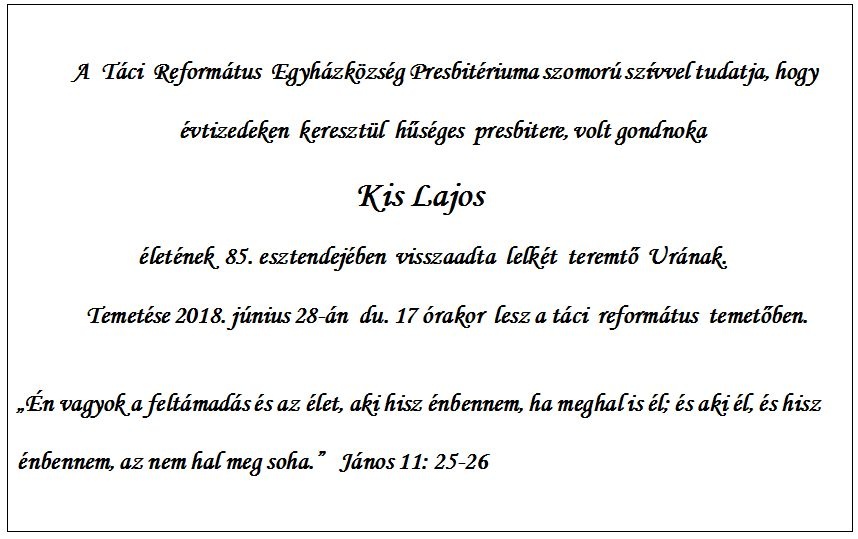 „Ócsai Judit, a Tinódi Lantos Sebestyén Református Iskola egykori zongoratanára – aki 1996-1999 között az intézmény igazgatói feladatait is ellátta – 46 éves korában elhunyt. Osztozunk a gyászoló család fájdalmában.”