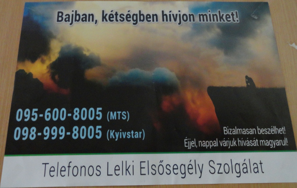 Kárpátalján éppen a kelet-ukrajnai háborús helyzet miatt vetődött fel a telefonos lelkigondozói szolgálat létrehozása, hiszen nagy bajba jutnak a családok, a férfiak elmennek, nincs munka, felszöktek az árak, a számlák pedig kérlelhetetlenül jönnek. Itthon összesen ötszáz önkéntes fogadja a segélykérő hívásokat tizennyolc szolgálatnál. Erdély és Kárpátalja bekapcsolása után a felvidéki szolgálat létrehozásával a határon túli magyarság a Kárpát-medence további régiójában kap krízishelyzetben anyanyelvén segítséget. A Magyar Lelki Elsősegély Telefonszolgálatok Szövetsége kétéves képzésén tizenketten végeztek, ők alapították meg a közelmúltban a beregszászi telefonos lelki elsősegélyt. Most újabb önkéntes csapatot gyűjtenek, őket már helyben képzik majd ki. Révész Anikó örömmel újságolta, hogy imaszolgálat is áll a telefonos lelkigondozók mögött, akik kéthetente imádkoznak az önkéntesekért. Az önkéntesek minősítővizsga-bizonyítványt kapnak, enélkül senki nem dolgozhat. Hiába képzett mentálhigiénés szakember vagy lelkipásztor valaki, ha telefonos lelkigondozó szeretne lenni, akkor el kell végeznie a speciális telefonos lelkigondozói képzést.