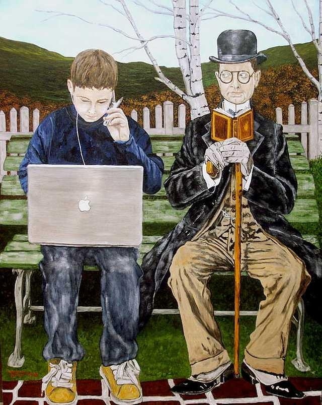 És ez valóban így is van. Mert a világtörténelemben mindig is harcoltak egymással a generációk, mindig is jelen volt a generációs szakadék, de valójában egy térben, egy kultúrában éltek, egy nyelvet beszéltek. A generációk közötti feszültséget elsősorban az önállósulási törekvések, illetve az értékrendbeli különbségek jelentették, de mindig megmaradt az a közös „nyelv”, amin a generációk tagjai meg tudták érteni egymást, s bár a fiatalok és az idősek kultúrája mindig is különbözött egymástól, gyökerében mindkettő azonos volt. Nem beszélve arról, hogy a hagyomány szentesítette kényszerűségből vagy szabad akaratból egy térben éltek a különböző korosztályú emberek a családban. A virtuális kultúraváltással azonban elveszítettük a közös teret, a közös kultúrát és a közös nyelvet.
