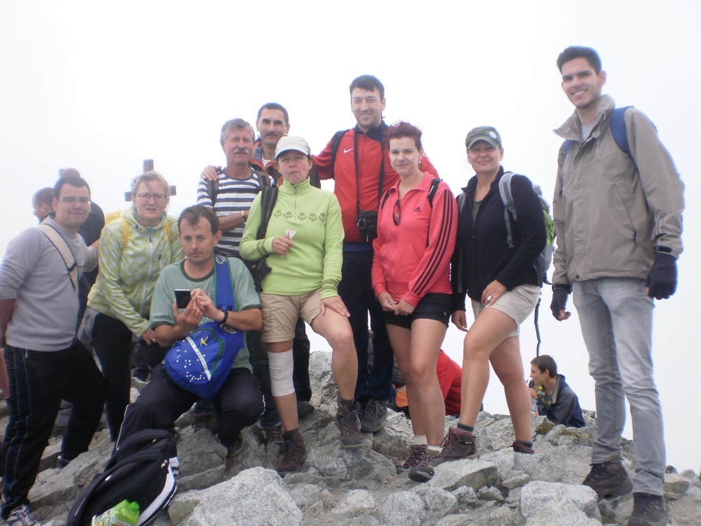 Így indultunk a Három-forrástól együtt, erősen! 1140 méteres szintről, a zöld jelzés mentén igyekeztünk felfelé. A táj, a hegyek rögtön lenyűgöztek bennünket, a fotók hamar gyarapodtak. A hirtelen emelkedő 5.3 km hosszú turistaúton kissé szétszakadtunk egymástól, mindenki más tempóban haladt előre. A túrát még nehezítette a törpefenyők szintje feletti sziklás, köves útvonal. 2000 méter felett sokszor szédítő, keskeny sziklaszirteken másztunk. Izgultunk egymásért, saját magunk sikeréért. Körbenézve tudatosult bennünk, a hatalmas hegyekhez képest milyen picik is vagyunk. Alázattal, tisztelettel, időnként elgondolkodva folytattuk a kihívást. A Kis-Kriván 2334.5 méter magasságának elérésekor erőt gyűjtöttünk, mert érezhetően ritkult a levegő. Megláthattuk az első tengerszemet is. Megfeszítve kar- és lábizmainkat a végén már - páran négykézláb - úgy másztunk tovább... :) Végre felértünk!!! Néhányan saját korlátainkat legyőzve, de óriási megelégedettséggel, ámulatba ejtve érkeztünk meg. Remegtek kezek, lábak... A csúcskereszt tövében 2494 méter magasan hálát mondtunk mindenért!