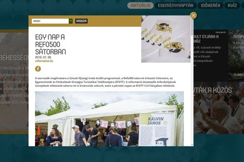 A reformacio.ma a reformációi emlékévre készülve hírekkel, interjúkkal, riportokkal, Kárpát-medencei eseménynaptárral, történelmi időkerékkel, kvízekkel és interaktív térképpel várja a látogatókat.