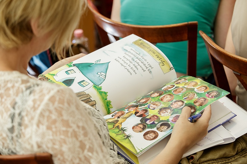 „Ezekben a helyzetekben fontos, hogy szülőként és szakemberként a számukra megfelelő módon tudjunk a gyermekek mellett állni, meg tudjuk teremteni érzelmi biztonságukat, meg tudjuk nyugtatni őket, vagy el tudjuk terelni figyelmüket”- emeli ki a kötet egyik szerkesztője Korzenszky Klára, klinikai szakpszichológus, énekesnő, aki nagyon sokat mesél, énekel az osztályon fekvő gyermekeknek.