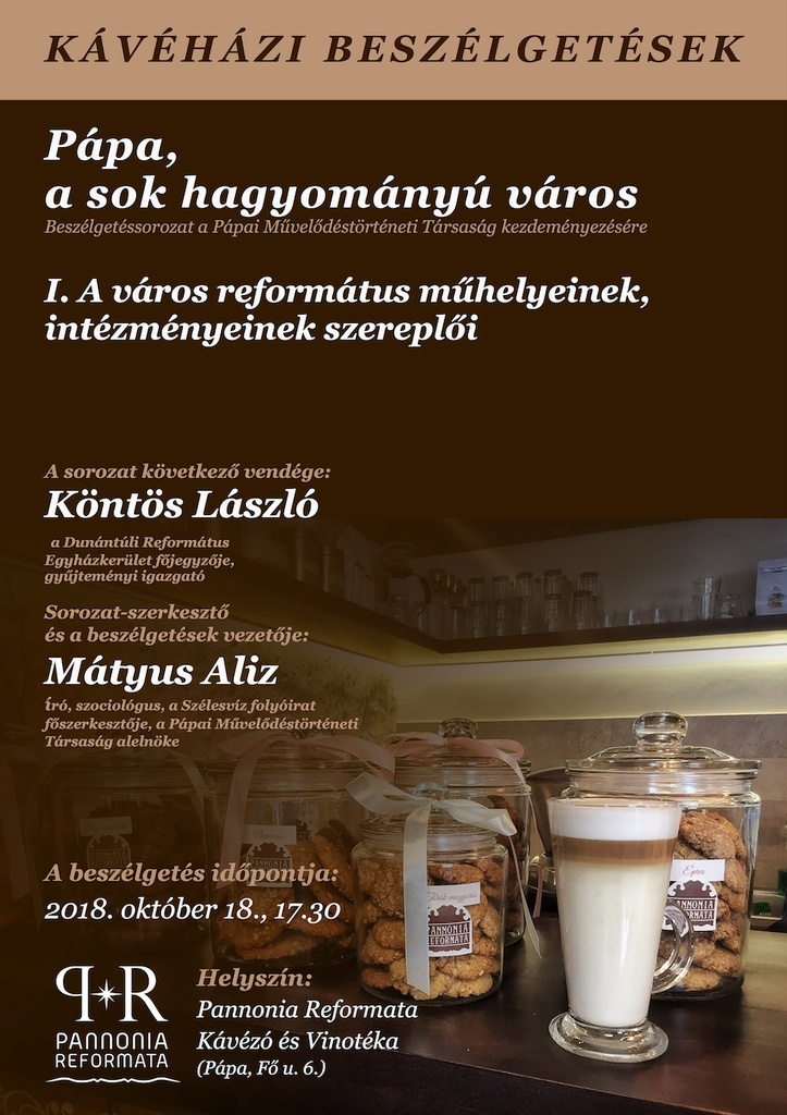 A Pannonia Reformata Kávézó és Vinotéka ad otthont a Pápai Művelődéstörténeti Társaság által szervezett beszélgetéssorozatnak, melynek következő vendége, 2018. október 18-án, Köntös László. Részletek a tovább mögött.