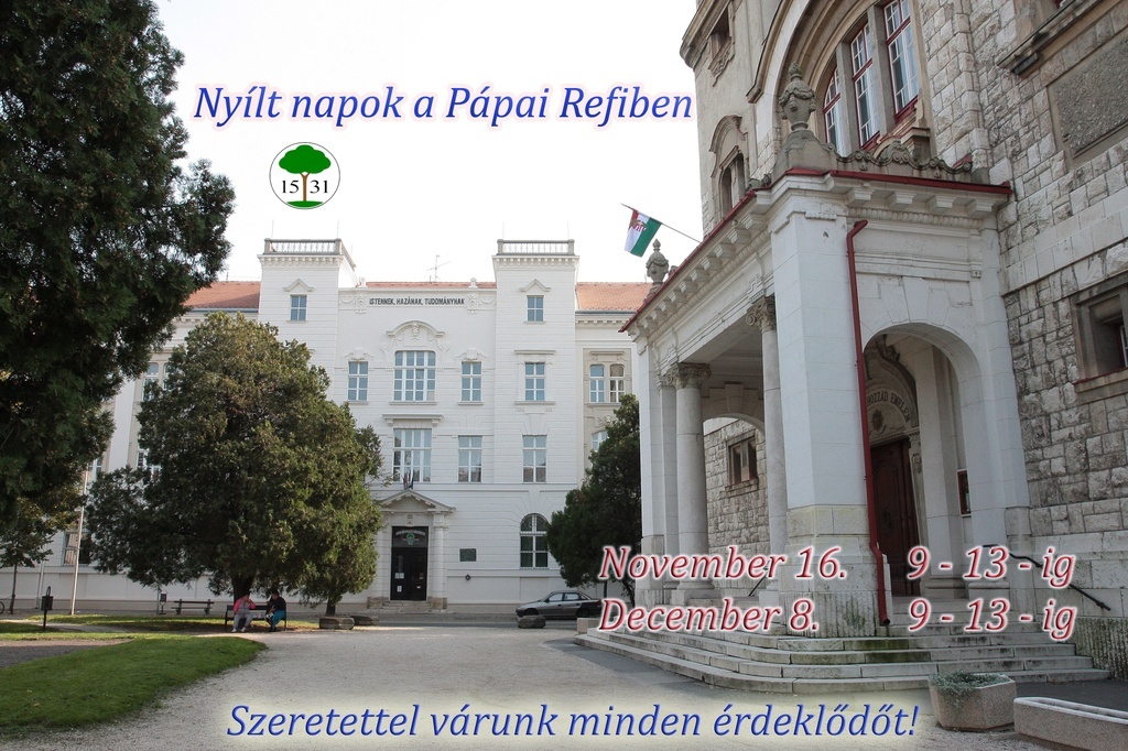 2018. november 16-án és december 8-án, 9-13 óra között tartja nyílt napjait a Pápai Református Kollégium Gimnáziuma és Művészeti Szakgimnáziuma .