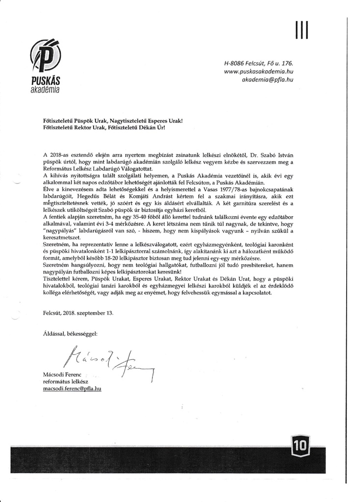 Református Lelkész Labdarúgú Válogatottat szervezenek, ahová várják az érdeklődő lelkipásztorok jelentkezését. Részletek a tovább mögött, egyéb információkért, illetve jelentkezési szándékkal Szőke Barnabás mezőörsi lelkipásztort lehet megkeresni a barnabas.szoke@gmail.com email címen.