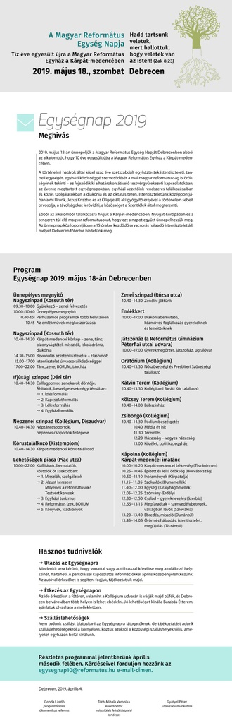 "Imalánc a debreceni Református Egységnapon május 18-án a Kollégium Kápolnájában