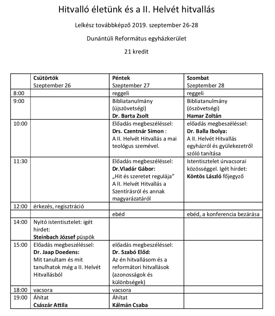 A Pápai Református Teológiai Akadémia ad otthont a „Hitvalló életünk és a II. Helvét hitvallás" című lelkésztovábbképző tanfolyamnak, amelyre 2019. szeptember 26 - szeptember 28. között kerül sor.