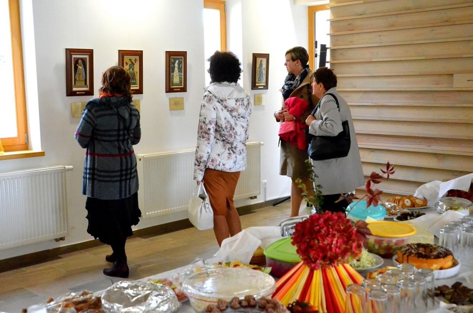 A résztvevők a gyülekezeti házban megtekinthették Szűcsné Novák Mária tűzzománc képeiből készült kiállítását is.