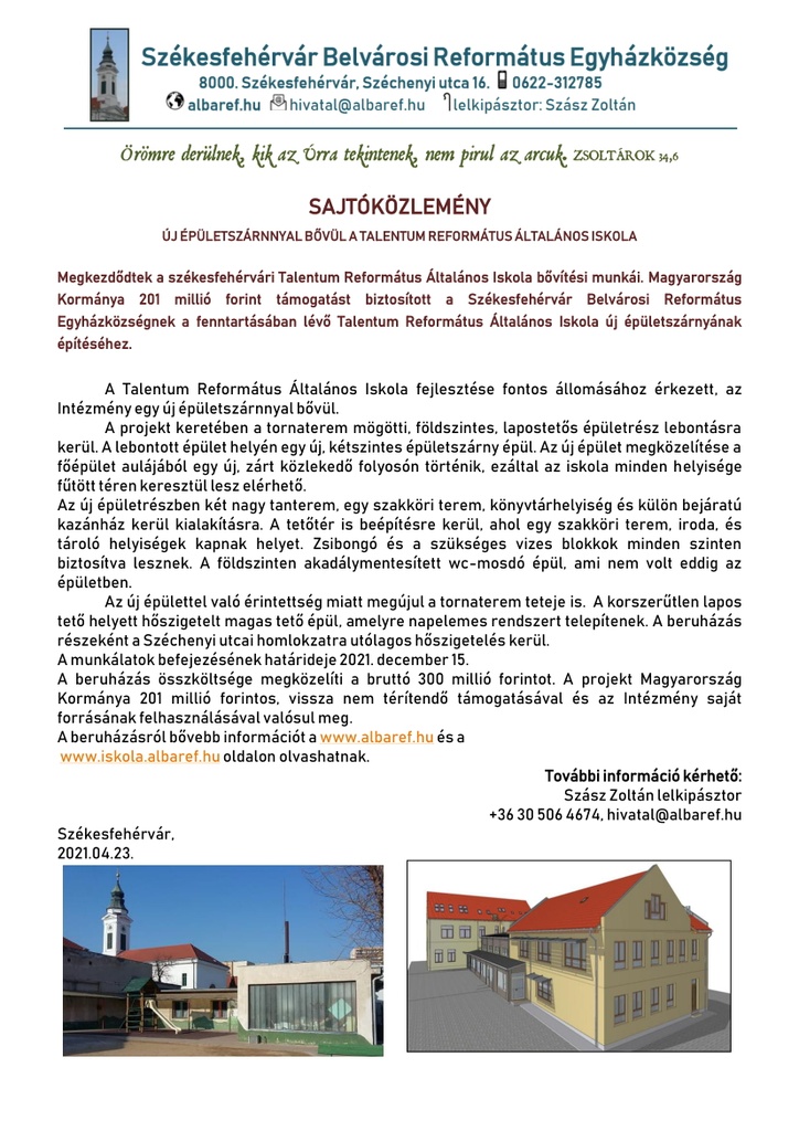 Általános Iskola új épületszárnyának építéséről tartunk.