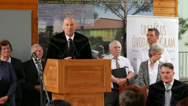Vargha Tamás, országgyűlési képviselő, államtitkár a Példabeszédek könyvéből vett idézettel kezdete ünnepi beszédét: „Neveld a gyermekedet a neki megfelelő módon, még ha megöregszik, akkor sem tér el attól." Fehérváron az tapasztalható, hogy nő a gyermeklétszám, ezért is nagyszerű esemény ennek az óvodának az átadása - mondta.