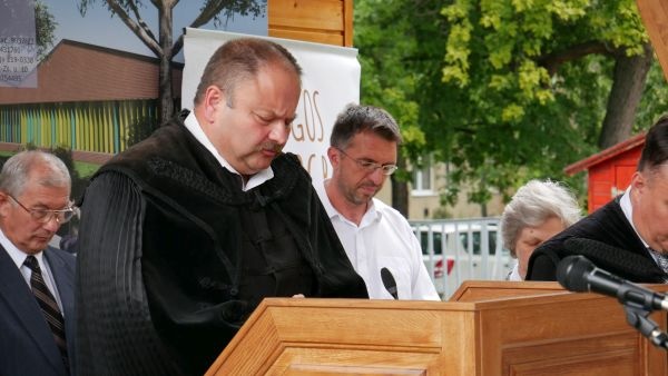 A püspök köszönetet mondott a támogatásért Magyarország Kormányának, a városnak, a gyülekezetnek, mindazoknak, aki ezért az óvodáért fáradoztak. „Nem volt hiábavaló, az áldás nem marad el, dicsőség legyen ezért az élő Istennek" zárta igehirdetését Steinbach József.