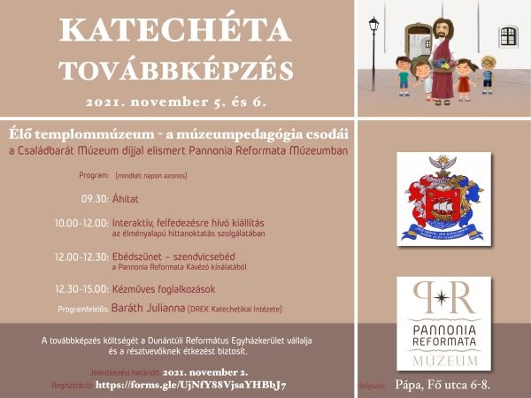 A továbbképzés költségét a Dunántúli Református Egyházkerület vállalja és a résztvevőknek étkezést biztosít. (Az útiköltségről a résztvevők gondoskodnak)