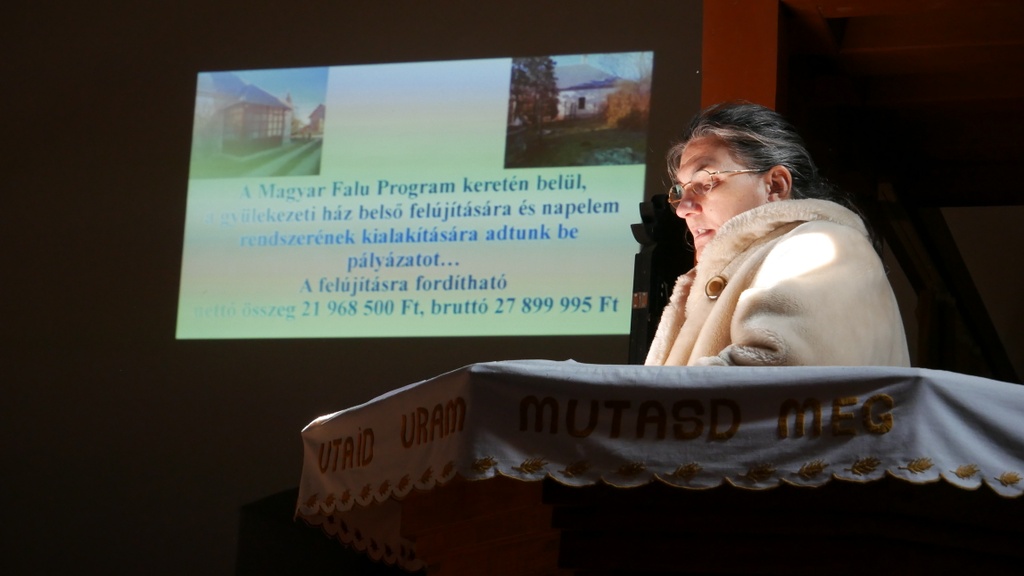 „A dicséret, a dicsőség, a hálaadás egyedül a könyörülő Istené." A beruházásról Szabó Virág nagytiszteletű asszony adott tájékoztatást. Sok munka, sok befektetett energia, sokak adománya, önkéntes munkája, segítőkészsége és jóindulata van az elkészült projektben. A lelkipásztor úgy fogalmazott, hogy emberi oldalon erő felett tettek meg mindent az ügyért, de a birtokba vett épület az Úr kegyelmét és áldását hirdeti.