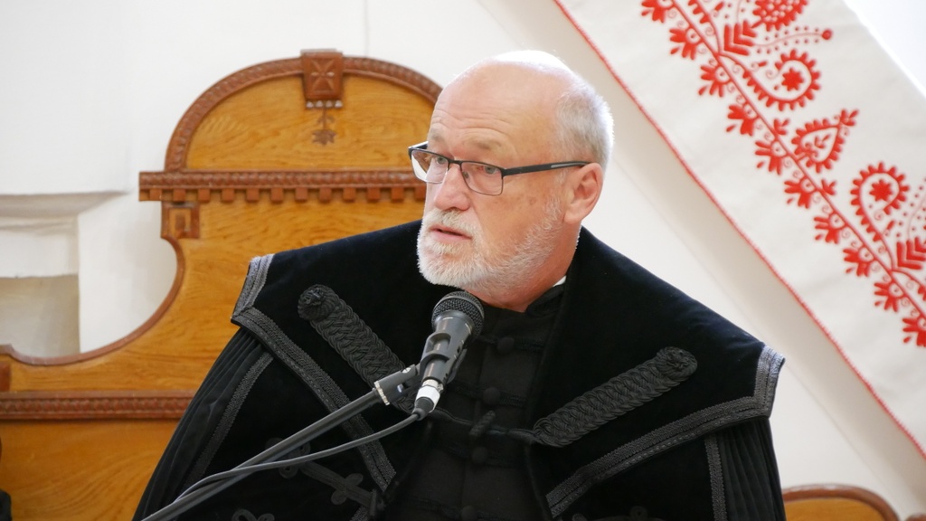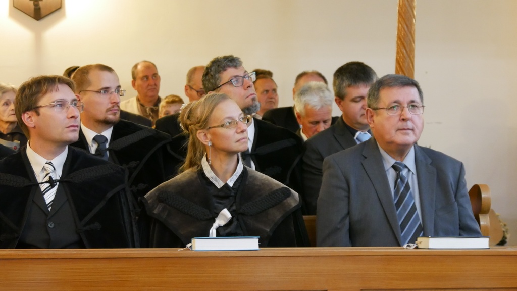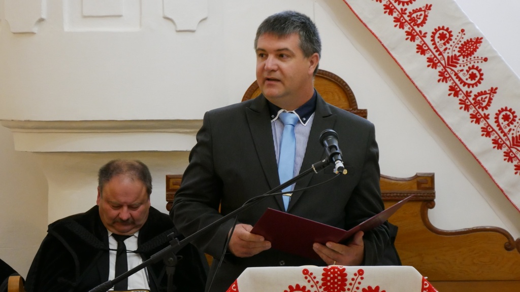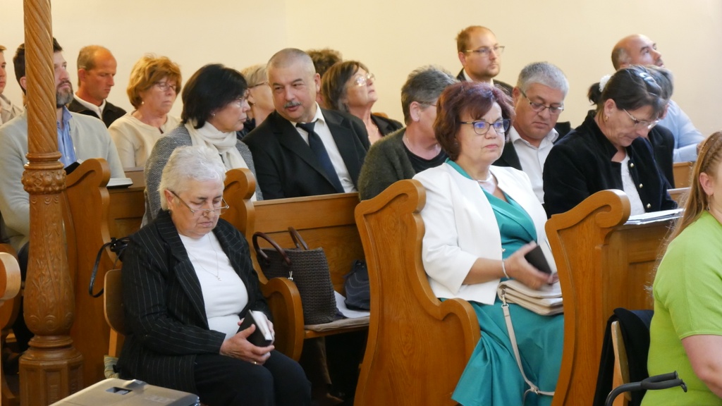 Máté László egyházkerületi lelkészi főjegyző, a más elfoglaltsága miatt csak távolról velük együtt ünneplő Steinbach József püspök imádságos, a gyülekezetre áldást kérő üdvözletét tolmácsolta.