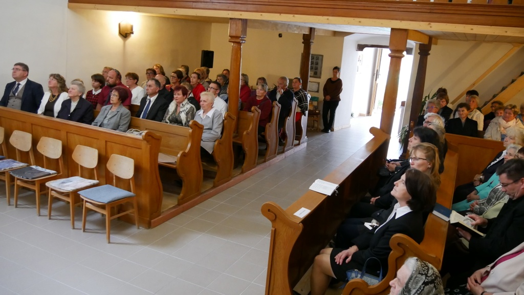 A gyermekek Istent dicsérő énekszolgálata után Nemes Gyula lelkipásztor köszöntötte a megjelenteket, majd képes beszámolóval mutatta be az elvégzett hatalmas munkát. Ács Zoltán gondnokkal közösen mondtak köszönetet mindazoknak, akik segítették, támogatták azt, hogy megvalósuljanak a felújítások.