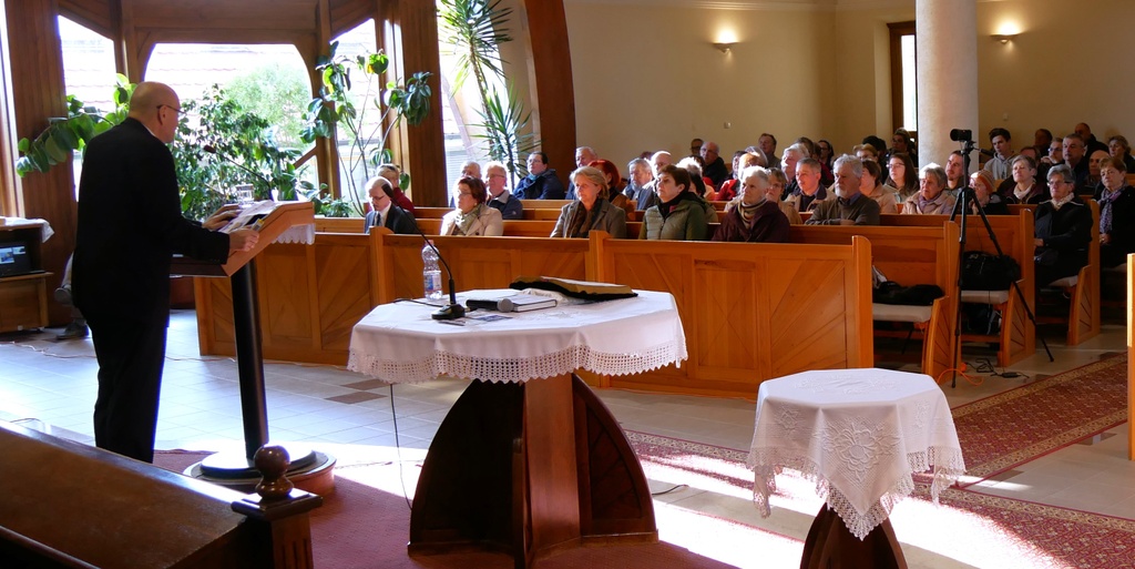 A közel egy órás előadás végén Steinbach József elmondta, hogy református egyházunkat Isten Igéje kapcsolja össze, ez a mi egységünknek az egyetlen forrása. Ezért is fontos az idei tematikus év. Imádkozzunk azért, hogy az egyház tudjon visszatérni a legfontosabb feladatához, Isten igéjének hirdetéséhez, ami a lelkipásztorok elsődleges szolgálata is kell, hogy legyen.