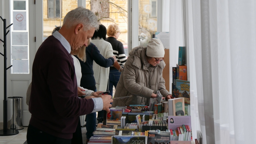 A kiadó széles palettájából hozott válogatni valót. A hangulatos előtér méltó helyet adott a kínálatnak. Bár a december hetedikei szombat munkanap volt, érdeklődők, vásárlók folyamatosan érkeztek. Az otthon munkatársai süteménnyel, kávéval, üdítővel fogadták a vendégeket.