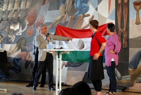 Egy adaptert tartott a kezében Fabiny Tamás, amikor az egyházát kellett bemutatnia. Mozgatható, pici, de fontos eszköz, önmagában azonban semmit sem ér, mondta. Mikor délután a kongresszusi központhoz érkeztem, a magas lépcsősor teli volt emberekkel, a nagy előadóterem bejáratainál már jóval az előadás megkezdése előtt feltartották a cserkészek az ÜBERFÜLLT, azaz MEGTELT táblát. Margot Kässmann, a rendkívül népszerű, egykori püspök szexualitásról szóló előadását még az udvaron is összepréselődve hallgatták az emberek a hangszórókból.