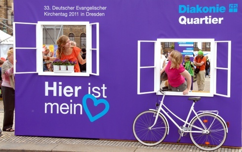 Minden precízen szervezett, a németek pontosan kezdenek, és betartják a biztonsági szabályokat. A fiatal önkéntesek harsányan, vidáman osztogatják a szórólapokat, irányítanak el egyik helyszínről a másikra. A Kirchentagon a kisgyerekektől a nagyszülőkig mindenki jól érezheti magát.