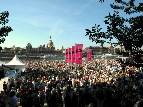 Igazi zarándokként érkeztek ide az emberek, sokan Németország más tájairól, de szemmel láthatóan más földrészekről is. Eljöttek, hogy felkutassák a kincseiket. A színes emberkavalkád más és más helyszínek felé veszi az irányt. Egyszerre több istentisztelet, koncert, színielőadás, pódiumbeszélgetés és ki tudja, mi minden zajlik még a külvárosban is.