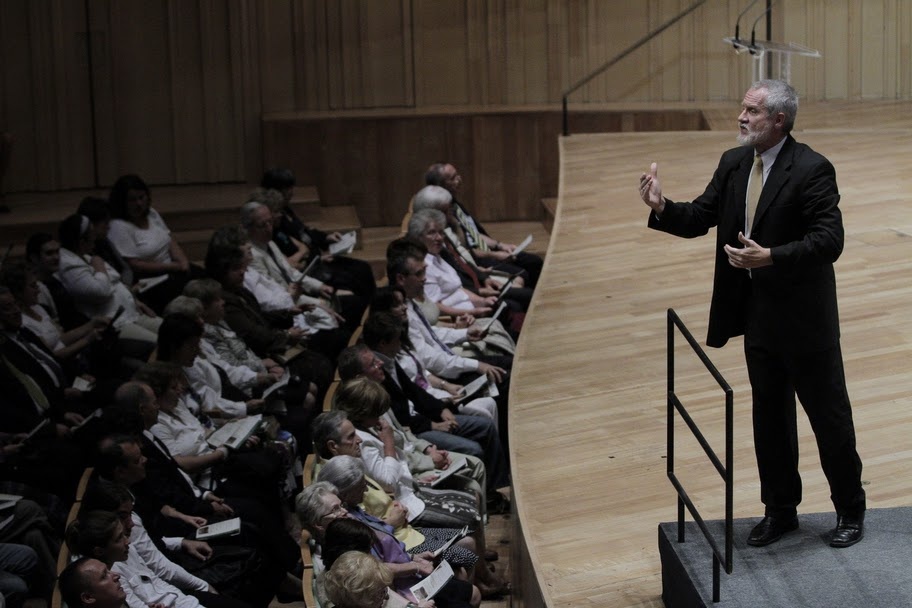 Arany János, a Psalterium Hungaricum kórus vezetője a közönséget is énekeltette