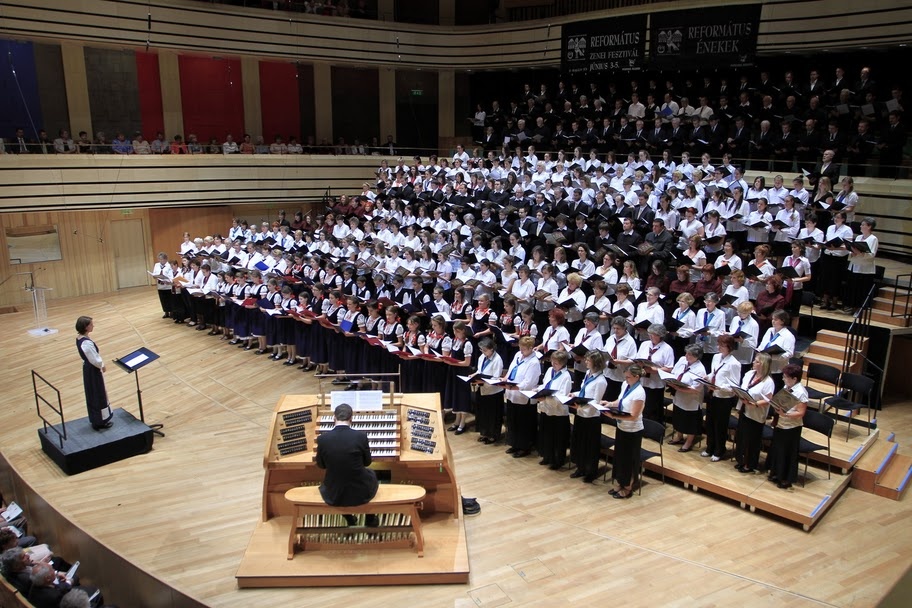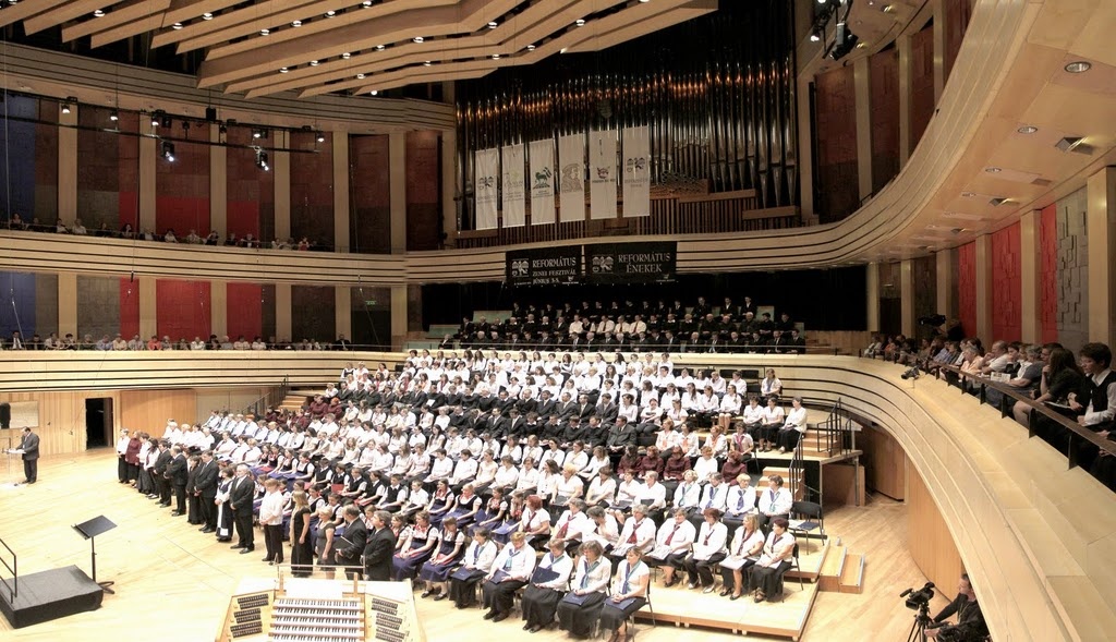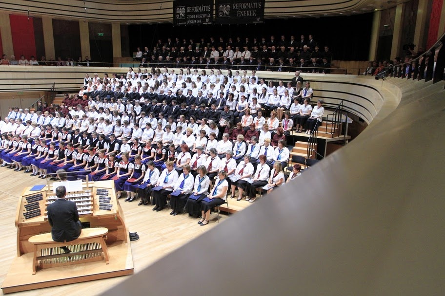 A színpadon a 370 fős Kárpát-medencei Egyesített Református Kórus