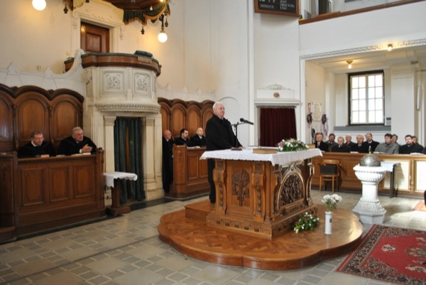 Dr. Huszár Pál főgondnok, a zsinat világi elnöke a hálaadás fontosságát hangsúlyozta ünnepi beszédében. Hálát adhatunk azért, hogy - a támadások és nehézségek ellenére is - hangzik az Ige a Dunántúlon. Kiemelte, hogy 400 éve a Körmendi Zsinaton törvénybe foglalták és lerakták az Egyházkerület lényegi alapjait, melyek lényegében mind a mai napig érvényesek.