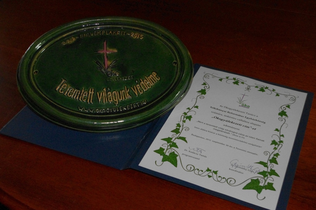 Az ünnepi alkalom utolsó részében dr. Kodácsy Tamás vette át a szót, aki a Magyarországi Református Egyházon belül elindult ökogyülekezeti program vezetője. Ekkor került sor az ökogyülekezeti díjak és kitüntetések átadására. Az egész különlegességét az adta, hogy ilyen jellegű és mérvű elismerést még nem osztottak ki az egyházon belül. Először azokat szólították, akik csak most szeretnének elkezdeni foglalkozni a teremtésvédelemmel. Két gyülekezet vállalta, hogy a jövőben az Ökogyülekezeti Tanács ajánlásai alapján fognak viszonyulni a környezetükhöz.